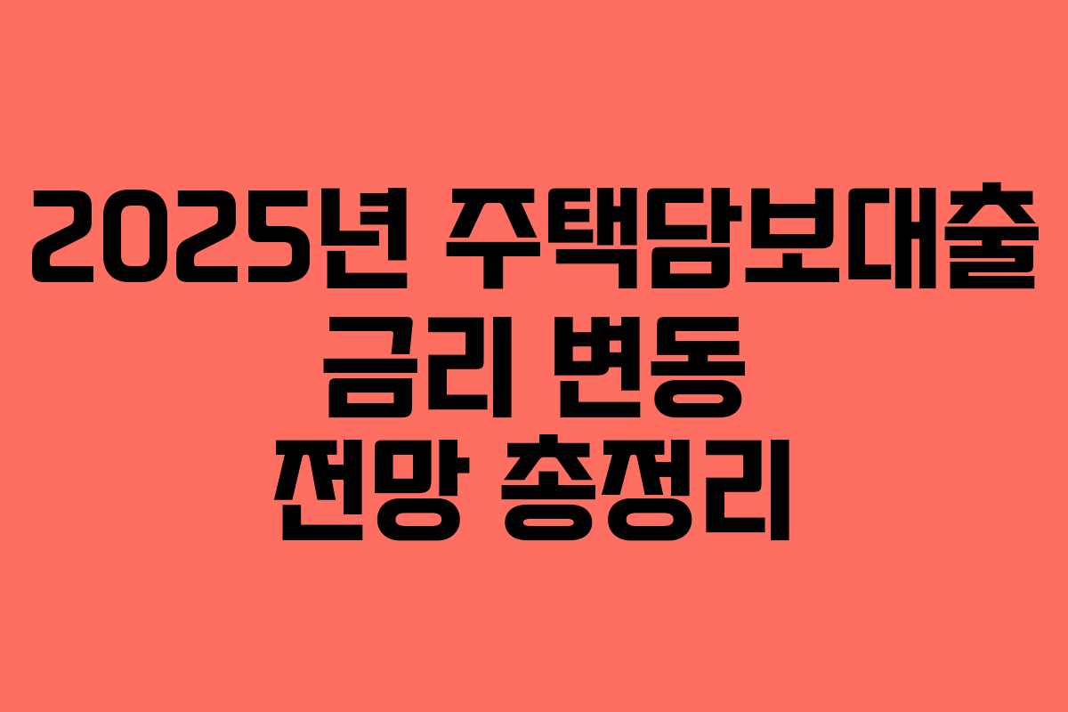2025년 주택담보대출 금리는 2022년부터 2024년까지의 급등 이후 안정세를 보일 것으로 전망됩니다. 2025년 초 기준으로 고정금리는 4% 중후반, 변동금리는 3% 후반에서 4% 초반으로 형성되고 있습니다. 최근 은행들이 대출 경쟁을 재개하면서 우대금리와 이벤트금리를 제공하고 있어 금리 인하 경쟁이 이어지고 있습니다.