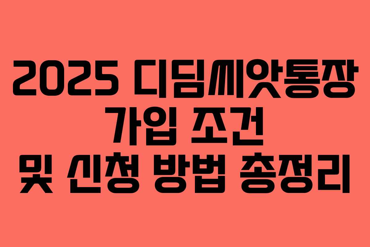 2025 디딤씨앗통장 가입 조건 및 신청 방법 총정리