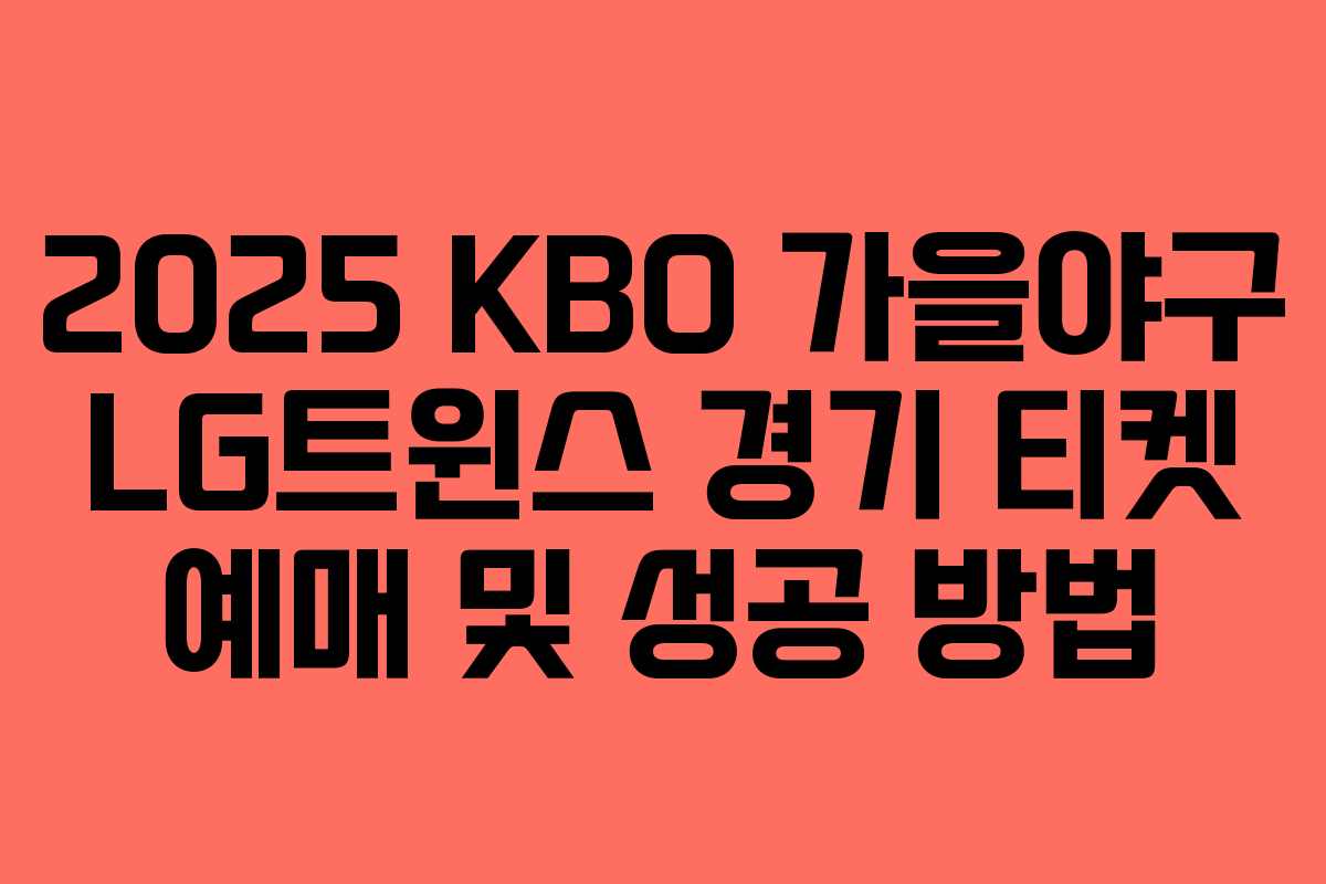 2025 KBO 포스트시즌 가을야구 LG트윈스의 경기 일정이 발표되었습니다. 가을야구는 10월 2일부터 10월 29일까지 진행되며, 높은 인기 덕분에 티켓이 빠르게 매진될 수 있습니다. 따라서 미리 준비하는 것이 중요합니다. 이 글에서는 LG트윈스 경기 예매 방법과 성공적인 티켓팅 팁을 안내합니다.