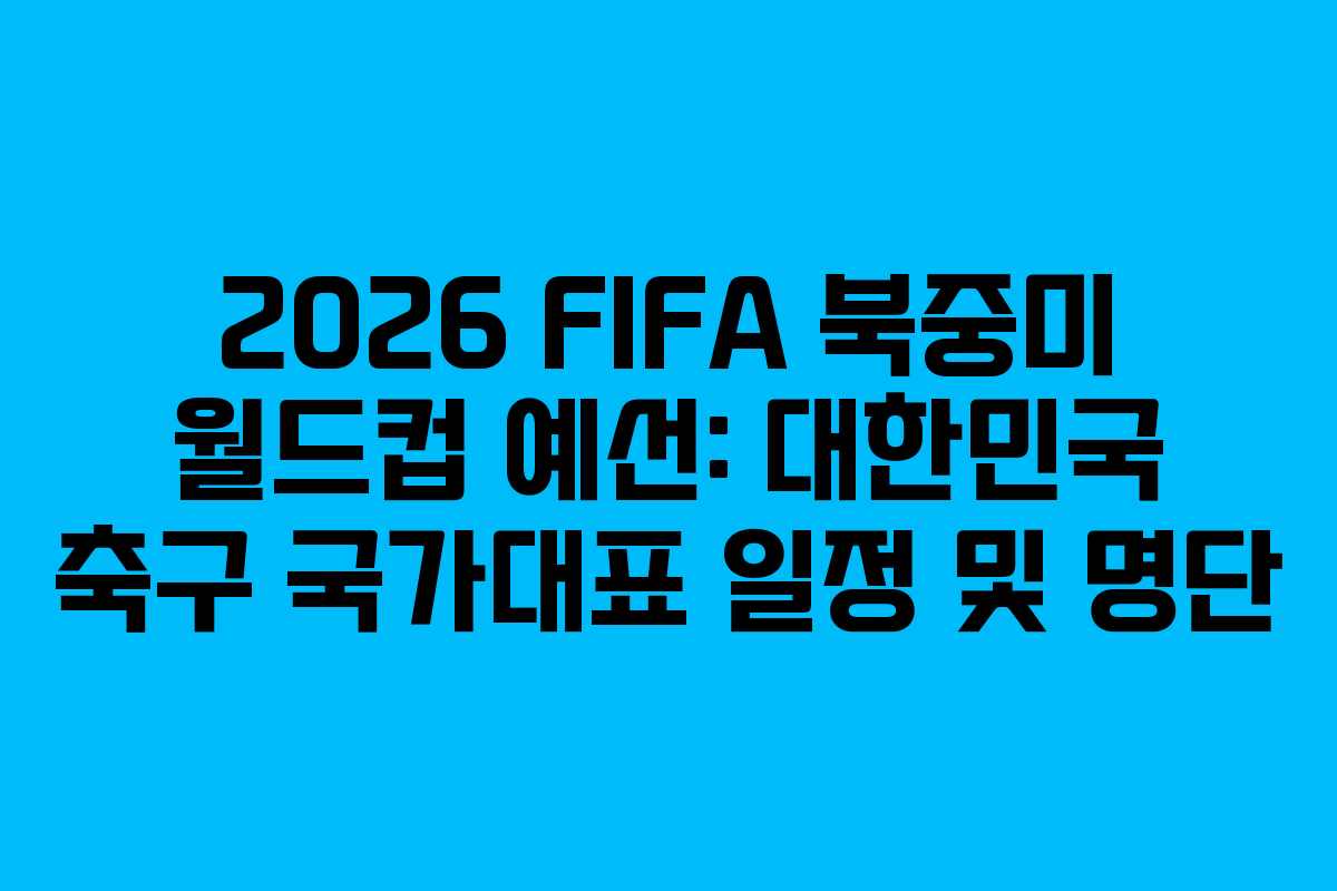 2026년 FIFA 북중미 월드컵을 향한 대한민국의 여정이 시작됩니다. 아시아 3차 예선에서 한국 축구 국가대표팀은 세계 무대에 도전할 준비를 하고 있으며, 이번 예선은 매우 중요한 경기가 될 것입니다.
