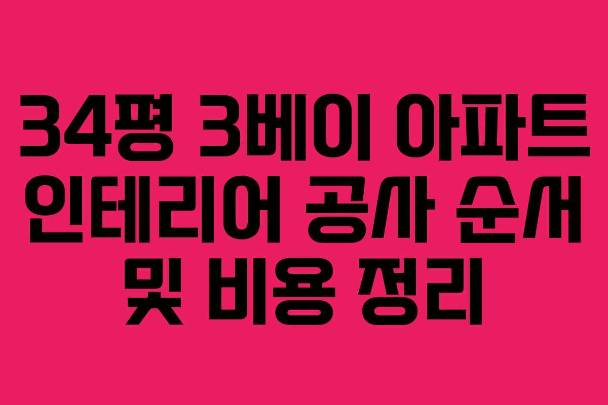 34평 3베이 아파트의 인테리어 공사는 여러 단계로 구성되며, 각 단계마다 특정 비용이 발생합니다. 이 글에서는 인테리어 공사의 순서와 비용을 상세히 정리하였습니다.