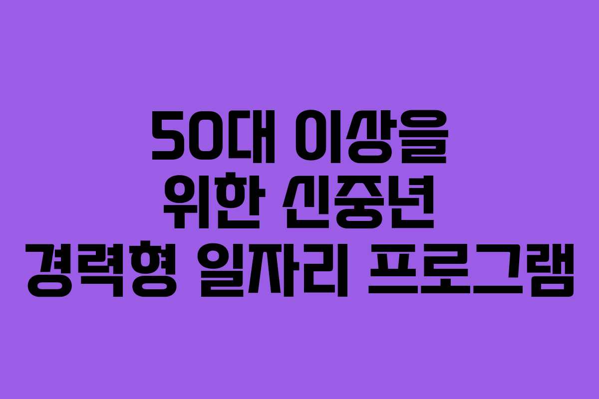 50대 이상의 중장년층이 새로운 일자리를 찾고 있다면, 신중년 경력형 일자리 프로그램을 통해 재취업의 기회를 잡을 수 있습니다. 이 프로그램은 고령 사회에 대비한 고용 안정과 경력 활용을 지원합니다.