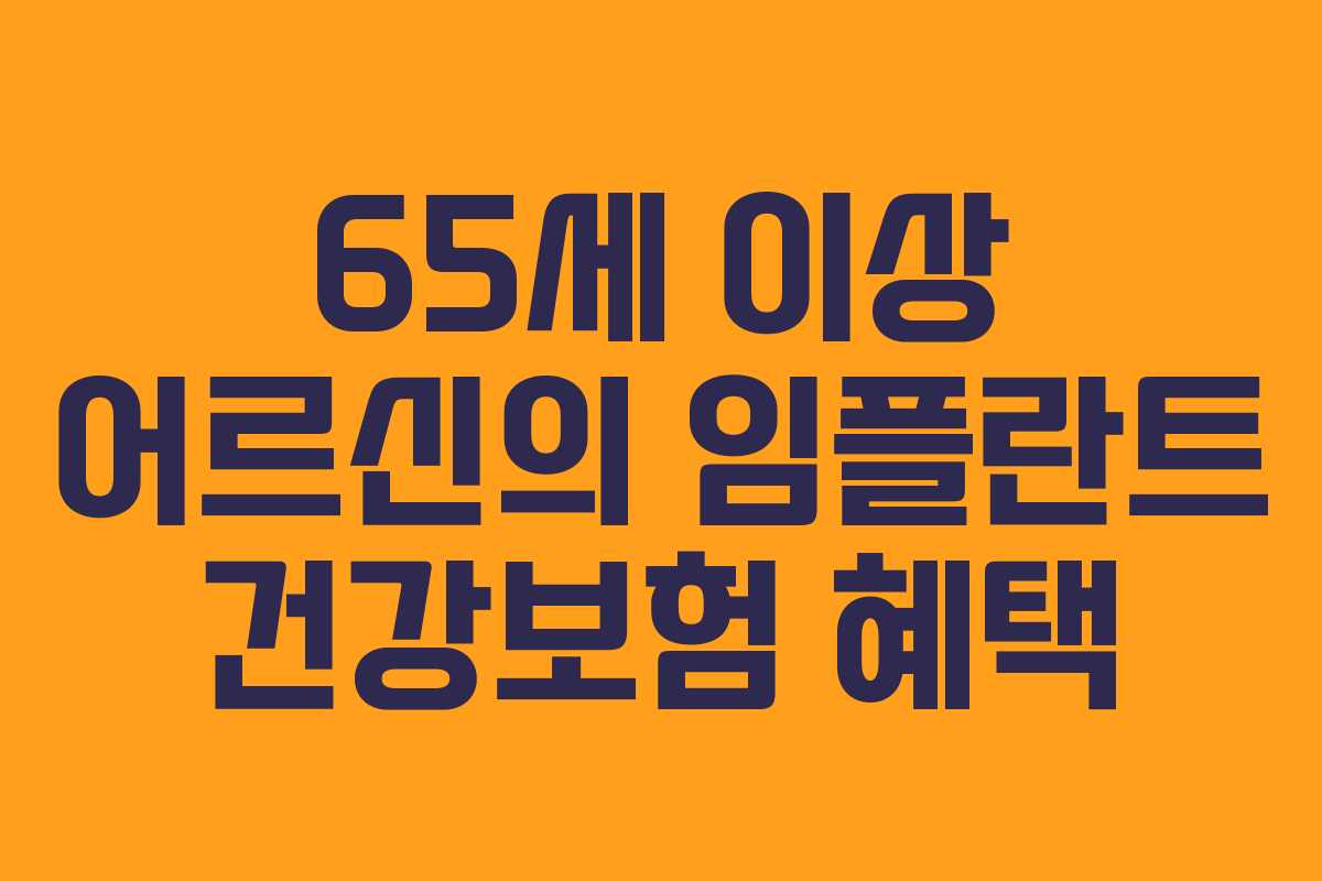 65세 이상 어르신들은 임플란트 시술 시 건강보험의 지원을 받을 수 있습니다. 본인 부담금은 시술 비용의 30%로 줄어듭니다. 그러나 다음과 같은 조건이 있습니다: