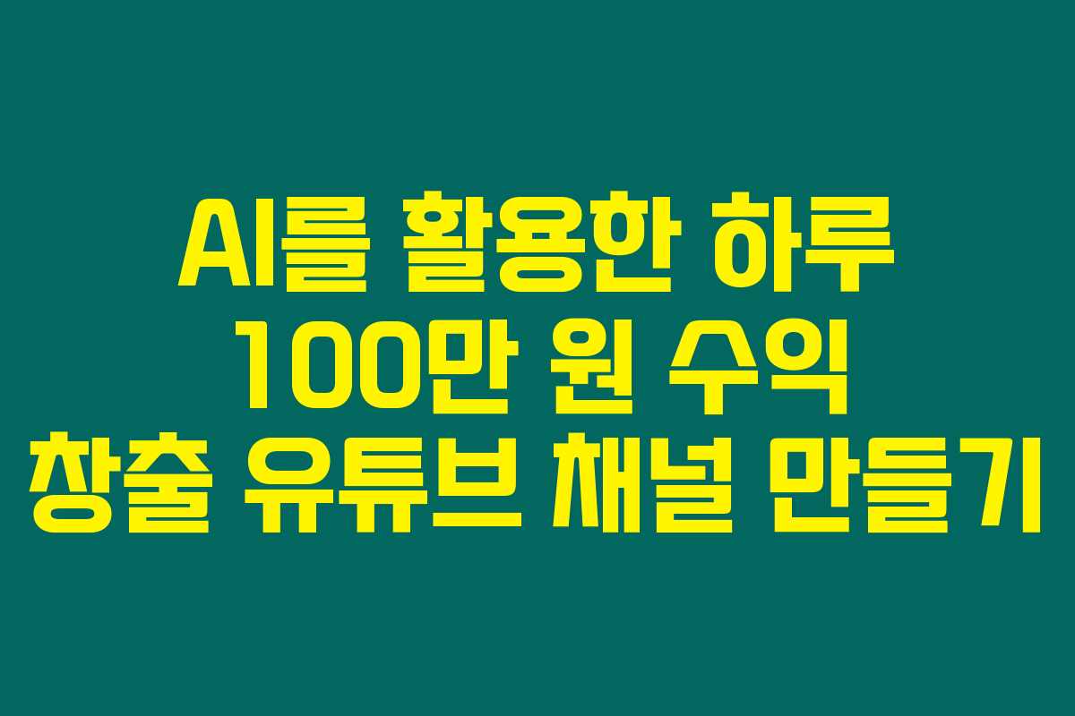 유튜브에서 AI 프로그램을 활용해 하루 100만 원을 벌 수 있는 채널을 만드는 것은 도전적이지만 가능해요. 여러분도 정보와 창의력을 결합해 성공적인 유튜브 채널을 운영해 보세요. 더 많은 노하우를 위해 제 블로그를 자주 찾아주세요!