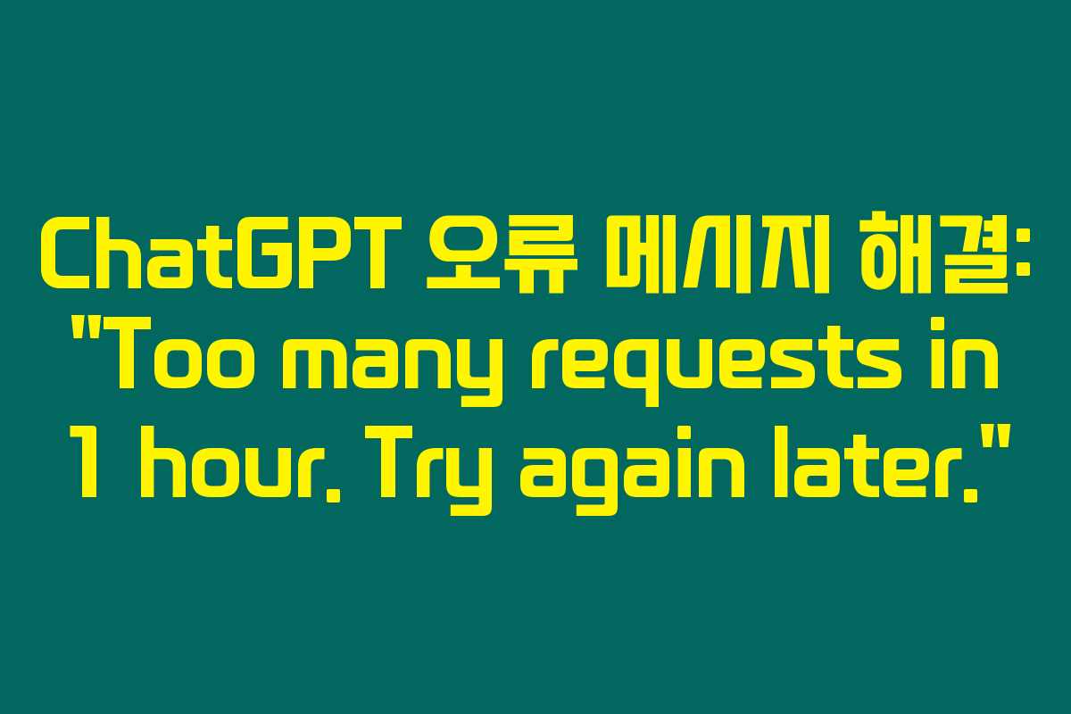 ChatGPT를 사용할 때 종종 마주칠 수 있는 오류 메시지, “Too many requests in 1 hour. Try again later.” 이 오류는 사용자가 너무 많은 요청을 하였기 때문에 발생하는 문제인데요, 이에 대한 해결법을 아래를 읽어보시면 알아보실 수 있습니다.