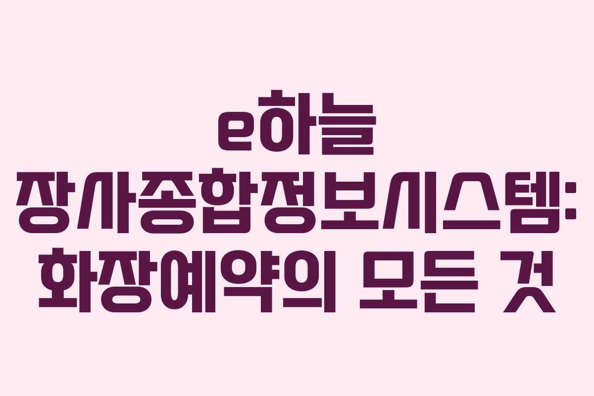 e하늘 장사종합정보시스템은 보건복지부에서 운영하는 장사 관련 통합 플랫폼입니다. 이 시스템을 통해 사용자들은 간편하게 화장 예약을 진행할 수 있으며, 다양한 장사 관련 정보에 접근할 수 있습니다.