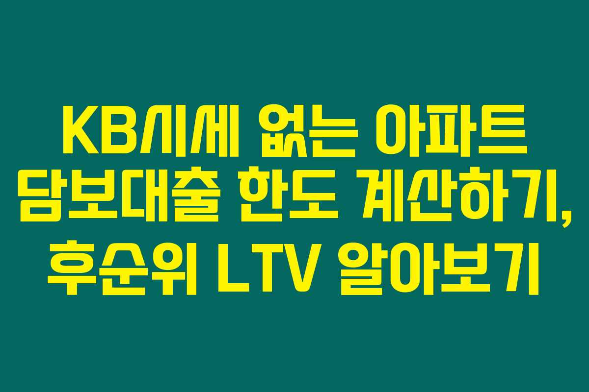제가 직접 조사해본 바로는, KB시세가 없는 아파트에 대한 담보대출 한도 계산 방식은 조금 복잡할 수 있지만 충분히 이해할 수 있는 구조입니다. 아래를 읽어보시면 KB시세가 없는 아파트담보대출 한도 계산 방법과 후순위 LTV에 대해서도 자세히 알게 되실 거예요.