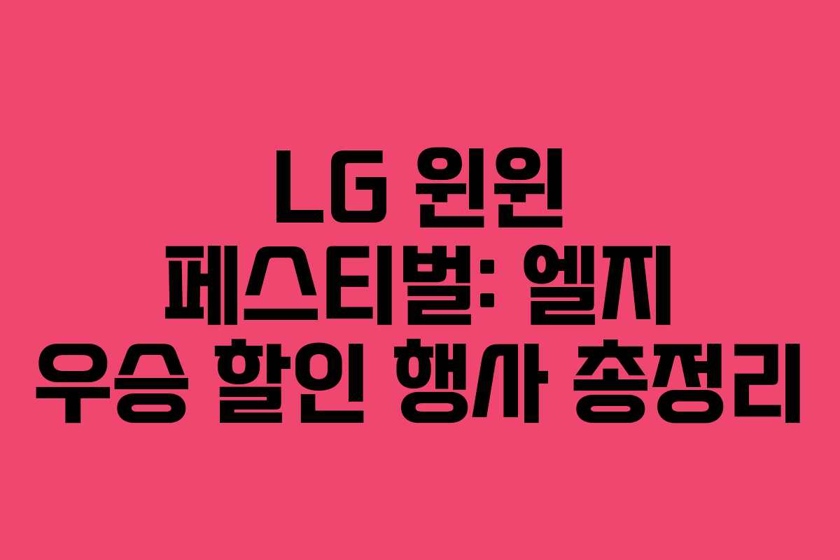 엘지트윈스가 29년 만에 한국시리즈에서 우승을 차지했습니다. 이를 기념하여 LG전자는 ‘LG 윈윈 페스티벌’이라는 특별 할인 행사를 진행합니다. 이번 행사에서는 다양한 가전제품을 포함한 총 7가지 할인 품목과 이벤트가 마련되어 있습니다. 자세한 내용은 아래에서 확인해보세요.