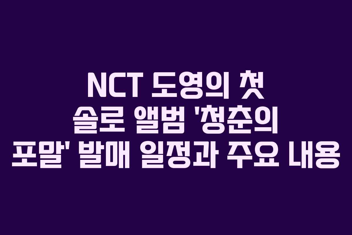 NCT의 멤버 도영이 첫 솔로 앨범 ‘청춘의 포말 (YOUTH)’을 2024년 4월 22일 발매합니다. 이번 앨범은 도영이 작사와 작곡에 참여하며, 그가 그려온 청춘의 감성을 담고 있습니다. 이번 포스트에서는 앨범의 주요 일정과 내용을 정리해보겠습니다.