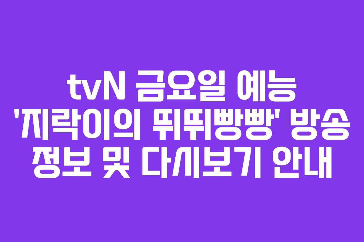 2024년 6월 21일 방송 예정인 tvN의 예능 프로그램 ‘지락이의 뛰뛰빵빵’에 대해 자세히 알아보겠습니다. 이 프로그램은 다양한 재미와 힐링을 선사하는 스핀오프 프로그램으로, 출연진과 방송 일정, 다시보기 정보까지 포괄적으로 다룰 예정입니다.